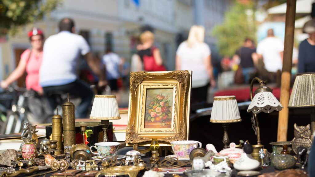 The Urban Village Market runs alongside, filling the adjacent space with an open-air collection of antique and artisan vendors selling china, silver, jewelry, books, vintage clothing, linens, lamps, chandeliers, artwork, and furniture — the kind of rotating cast of finds that rewards repeat visits. Together the two markets run from 8 a.m. to noon on Saturdays year-round, rain or shine, just steps from the Courthouse Metro station. It’s he kind of morning that starts with a cup of coffee and a pastry from a market vendor and ends with a jar of local honey, a bouquet of tulips, and something unusual you weren’t expecting.