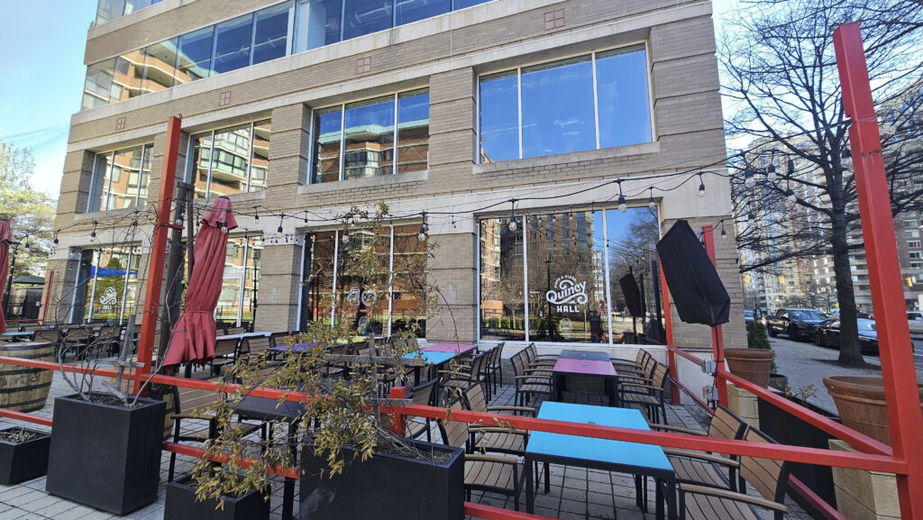 Quincy Hall at 4001 Fairfax Drive in Ballston is the kind of place that makes a weeknight feel like an occasion. The space itself sets the tone: 8,000 square feet of high ceilings, exposed metal beams, reclaimed wood accents, and communal tables that invite strangers into conversation — the architectural DNA of a German beer hall filtered through a distinctly American neighborhood bar sensibility. At the center of it all are 40 rotating draft lines showcasing local, craft, and rare beers that cycle through enough variety to give regulars a reason to check the tap list every visit.